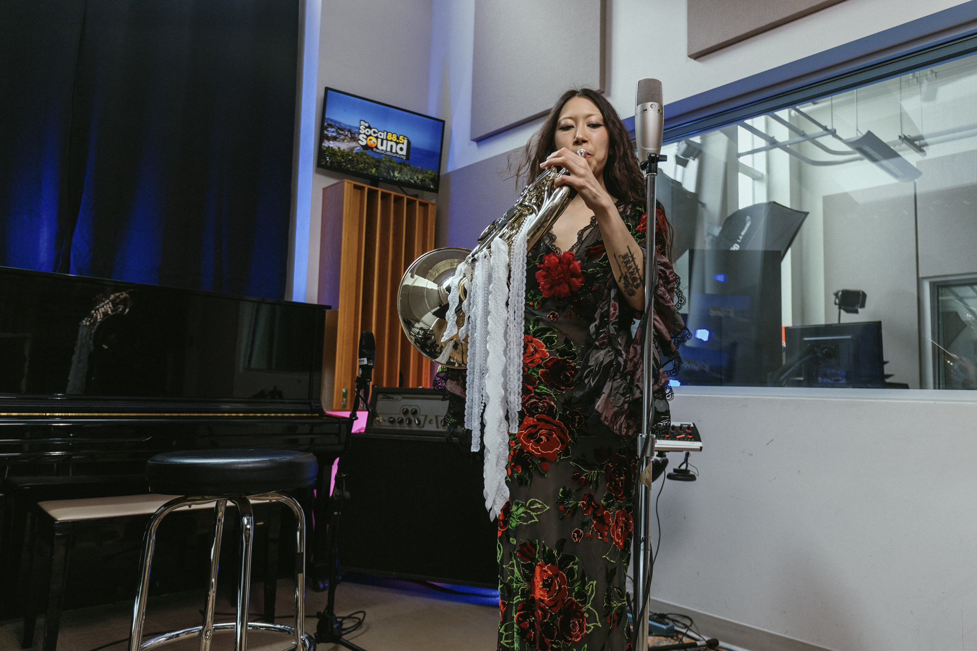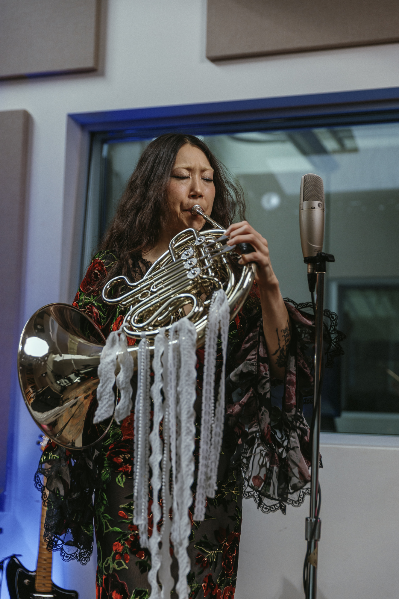 Sasami performed 3 songs in The SoCal Sound Performance Room, accompanied by Juan Diego Patino Restrepo on drums. In this exclusive performance, instead of playing electric guitar, Sasami returned to her roots of classical music playing the French Horn, citing that the guitar was currently lost in transit!